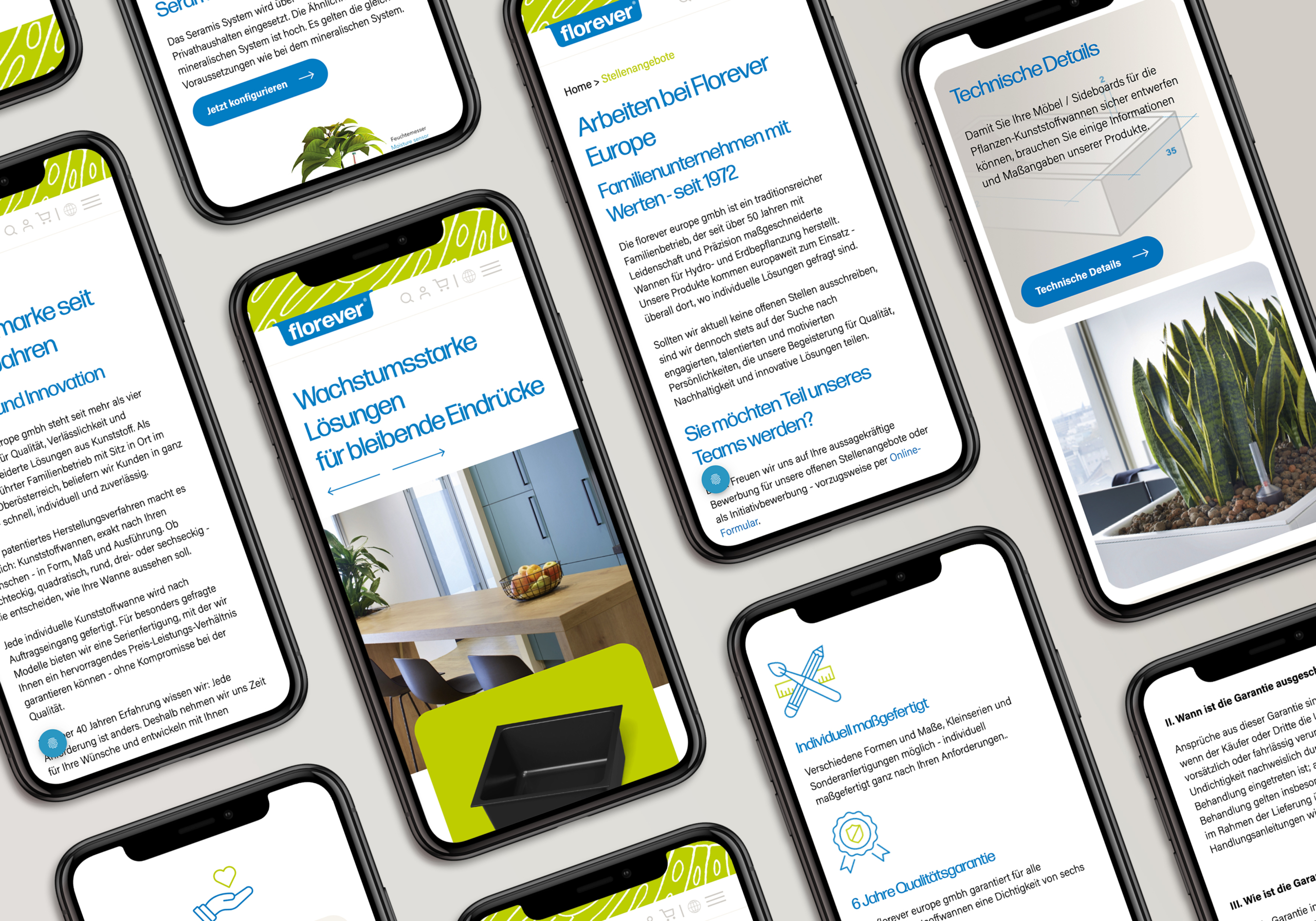 Für die florever europe GmbH wurde ein umfassender Shop-Relaunch umgesetzt, der den Online-Shop auf ein neues, modernes und nutzerfreundliches Level hebt. Ziel war es, das Einkaufserlebnis zu verbessern, die Markenidentität zu stärken und den Auftritt international nutzbar zu machen.